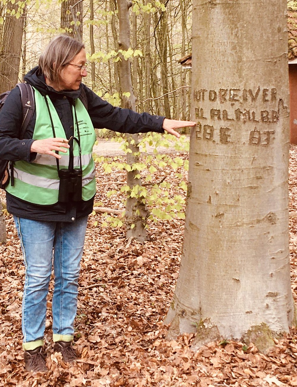 Wie alt mag die Eiche wohl sein? Ganz einfach: Der Stammumfang mal 0,8 bei Eichen, mal 0,6 bei Buchen ergibt das ungefähre Alter des Baumes. Schon lange, bevor Matthias Heesch den alten Kurpark anlegte, hat es an dieser Stelle also einen Wald gegeben. Die Naturführerin Frau Gisela Oden bewies mittels Messung der Leitfähigkeit des Wassers, welches der vielen Gewässer im Alten Waldbad das solehaltige Heilwasser enthält, von dem Bad Bramstedt und seine Kurgäste profitierten. Die hochinteressante Führung enthielt nicht nur biologische Informationen zu Neunaugen oder Schuppenwurz bereit, sondern auch kulturhistorische zu Hügelgräbern und der steinzeitlichen Gesellschaft. Wer hätte gedacht, dass in so einem kleinen Gebiet so viel Geheimnisse stecken? Vielen Dank, liebe Frau Oden, für einen erkenntnisreichen Nachmittag.