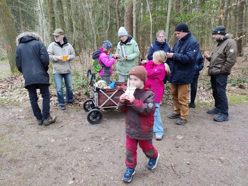 Nach dem anstrengenden Winterwahlkampf trafen sich die Grünen Bad Bramstedt mit Kind und Kegel zum Boßeln. Der Ochsenweg bot eine ideale Spielstrecke. Nach einer Stunde gab es eine kleine Stärkung - in fester und flüssiger Form. Zum Abschluss genossen alle das leckere Essen im Restaurant Athen.