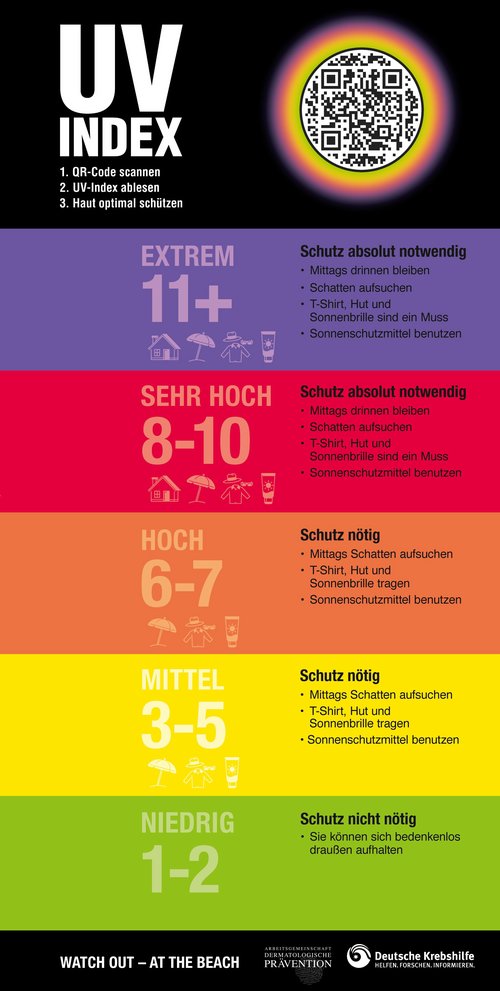 Empfehlungen verknüpft. Mithilfe von UV-Index-Tafeln wird so auf die Intensität der
