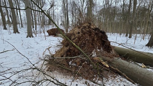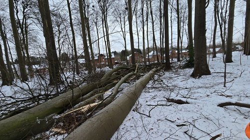 "Moin, am vergangenen Samstag sind im Bereich Herrenholz infolge starken Ostwindes zwei etwa 30 Meter hohe Buchen (Fagus sylvatica) umgestürzt. Glücklicherweise kam es zu keinen Personenschäden, jedoch verdeutlicht dieses Ereignis erneut die zunehmende Anfälligkeit bestimmter Baumarten gegenüber extremen Witterungseinflüssen. Die Rotbuche (Fagus sylvatica) reagiert besonders sensibel auf die veränderten klimatischen Bedingungen der letzten Jahre. Wiederholte Hitze- und Trockenperioden führen zu Wasserstress. Geschwächte Buchen reduzieren ihr Wurzel- und Kronenwachstum, was langfristig zu Vitalitätsverlust und erhöhter Bruch- oder Wurfgefahr führt.