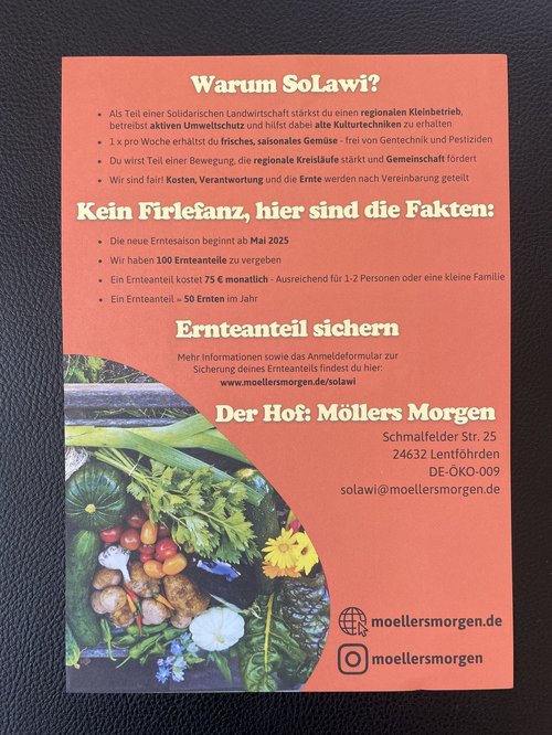 Heute möchten wir auf eine ganz tolle Sache aufmerksam machen: Ab Mai beginnt auf dem Möller Hof in Lentförden die Solidarische Landwirtschaft. Die beiden Möller-Brüder haben den Hof ihrer Eltern übernommen, die aber noch tatkräftig unterstützen und wandeln ihn von einem Viehbetrieb in einen veganen Agrarbetrieb um. Jede Woche erhält man eine Gemüsekiste mit frischem Gemüse. Wir finden das ganz großartig. Alle Infos gibt es hier: moellersmorgen.de/solawi. #moellersmorgen