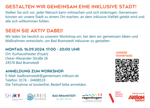 Wir laden Sie herzlich zu unserem Workshop ein, bei dem wir gemeinsam Ideen und Maßnahmen entwickeln, um Bad Bramstedt inklusiver zu gestalten.